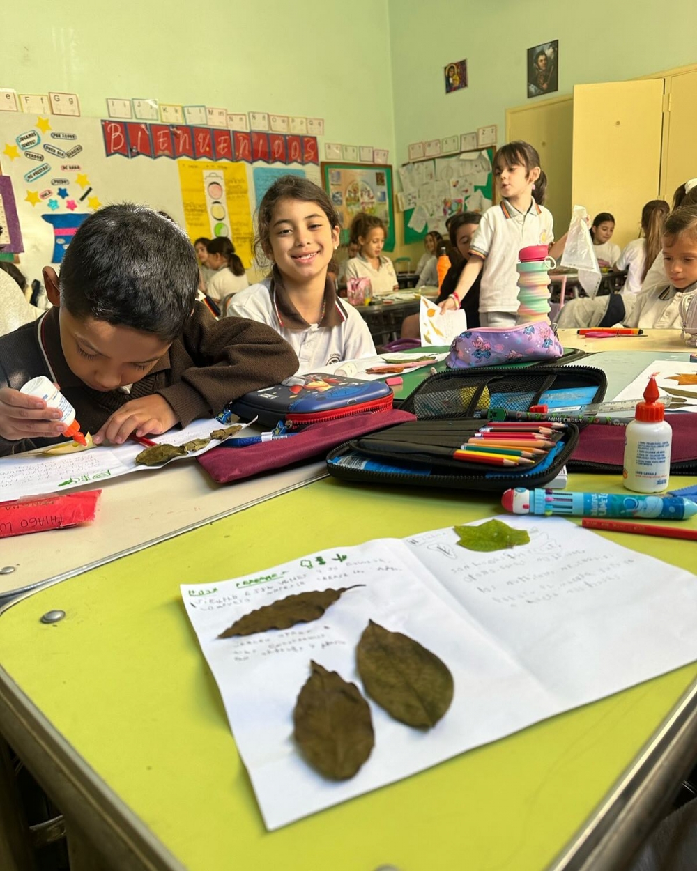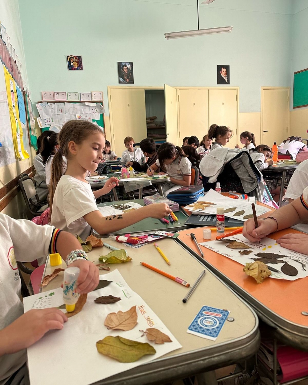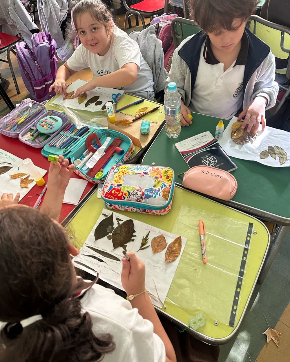 Los estudiantes de tercer grado estuvieron investigando y trabajando con los diferentes tipos de hojas, observando sus formas, texturas y colores.